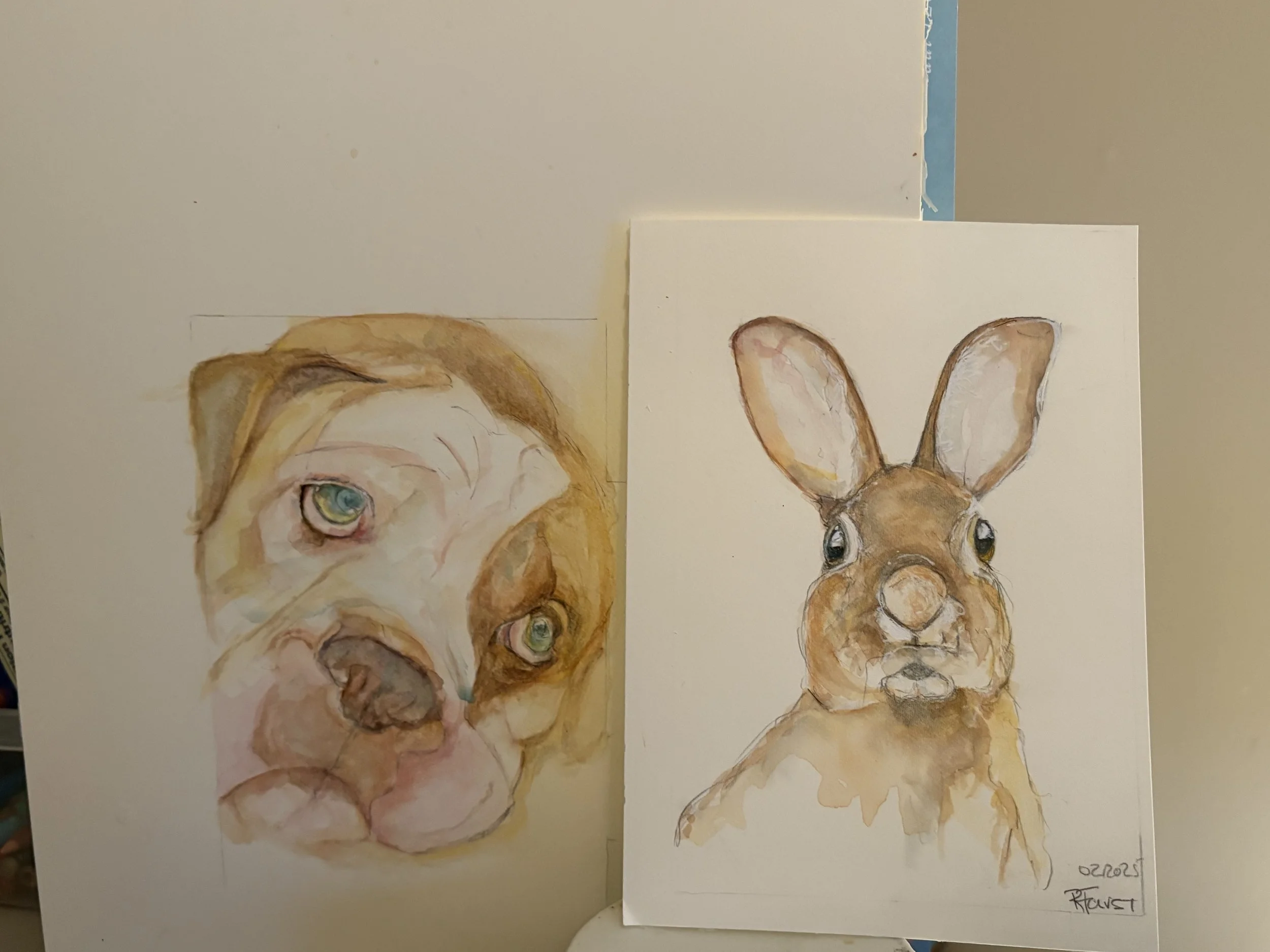 Bunny Art from the Paint 333 Watercolor Program for Beginners lesson 13