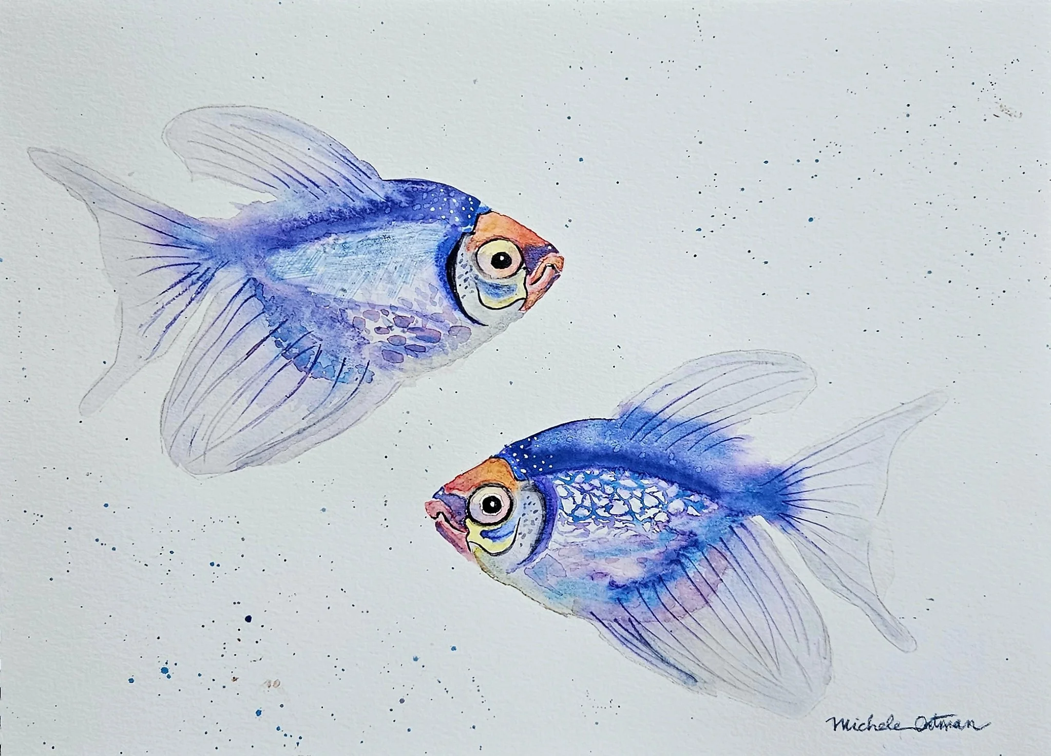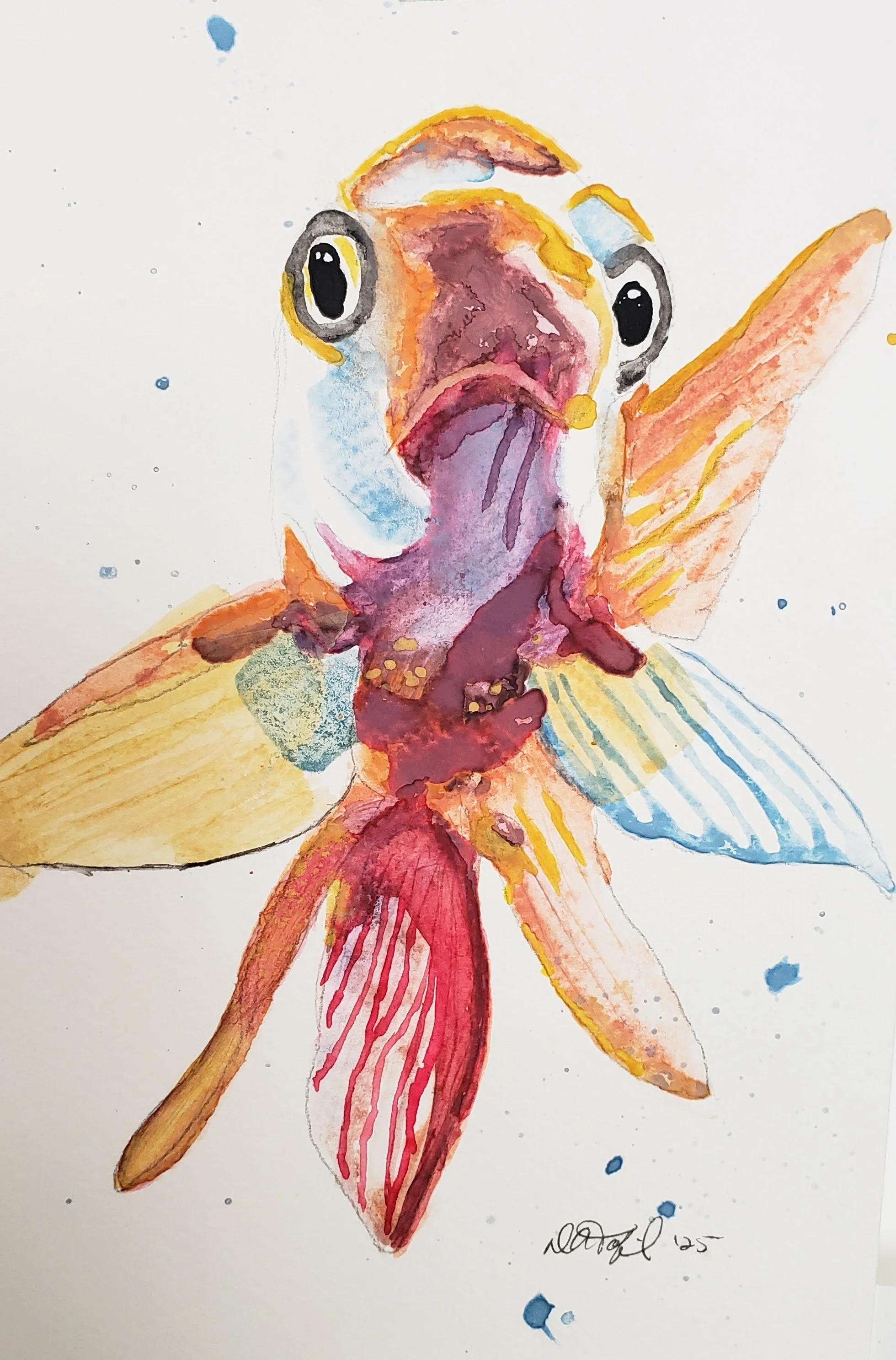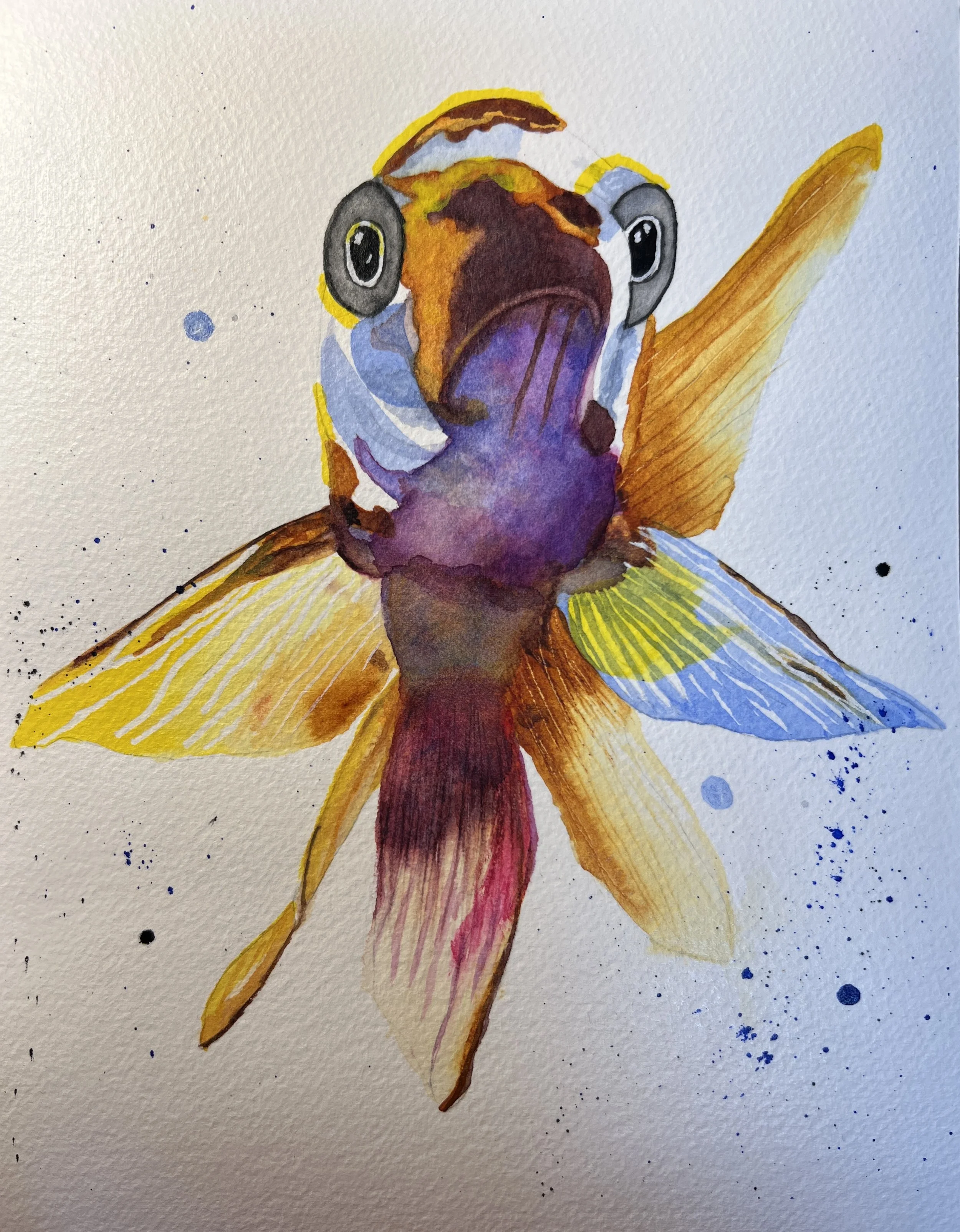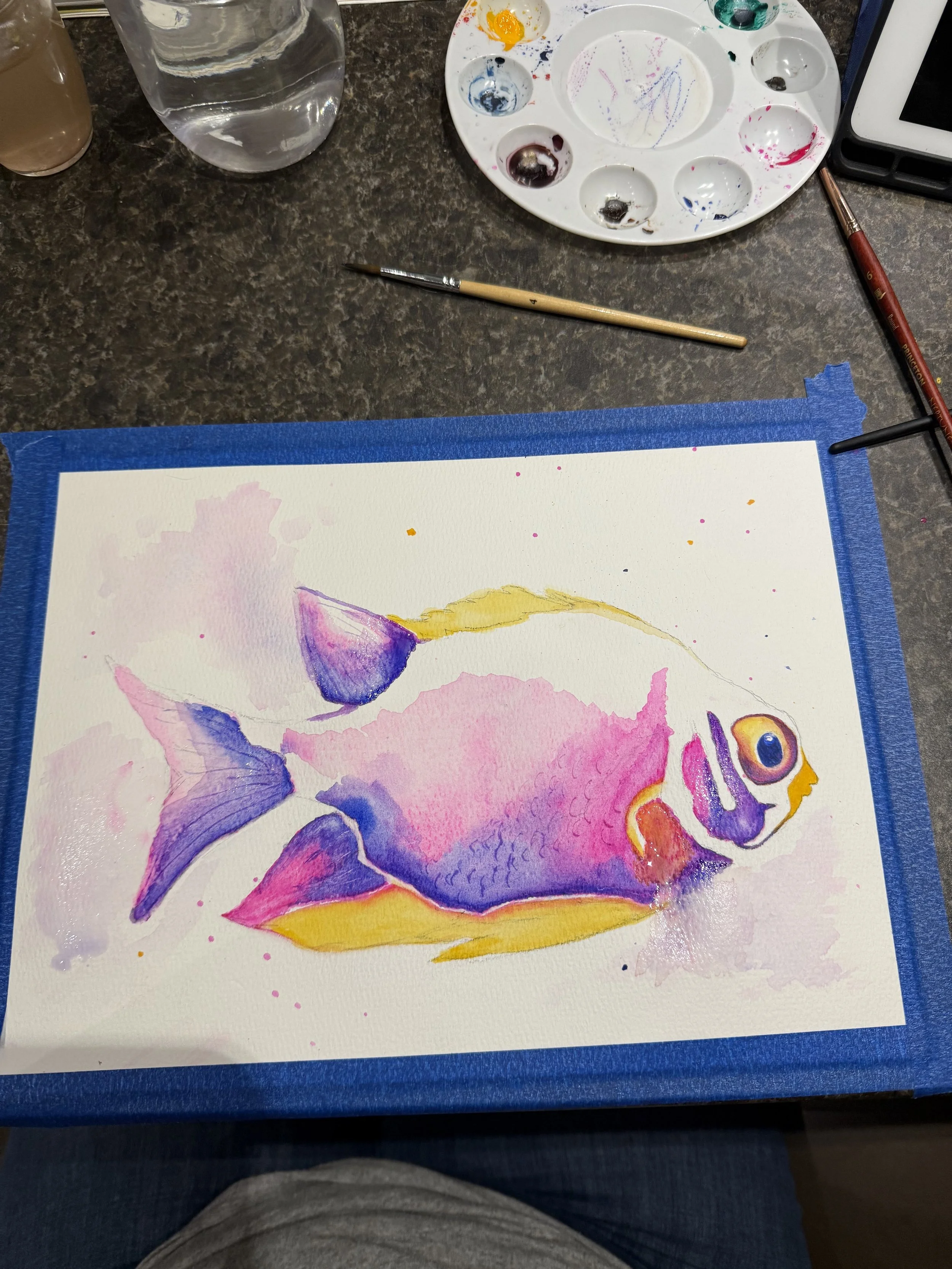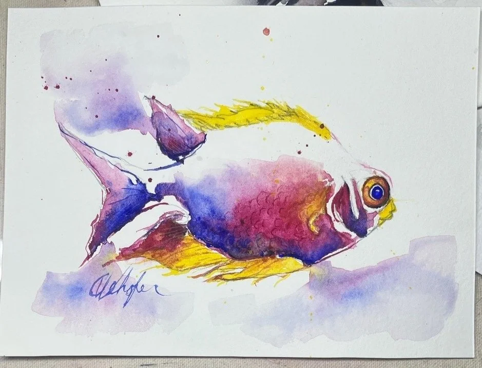 Funky Fish Art from the Paint 333 Watercolor Program for Beginners lessons 6-9