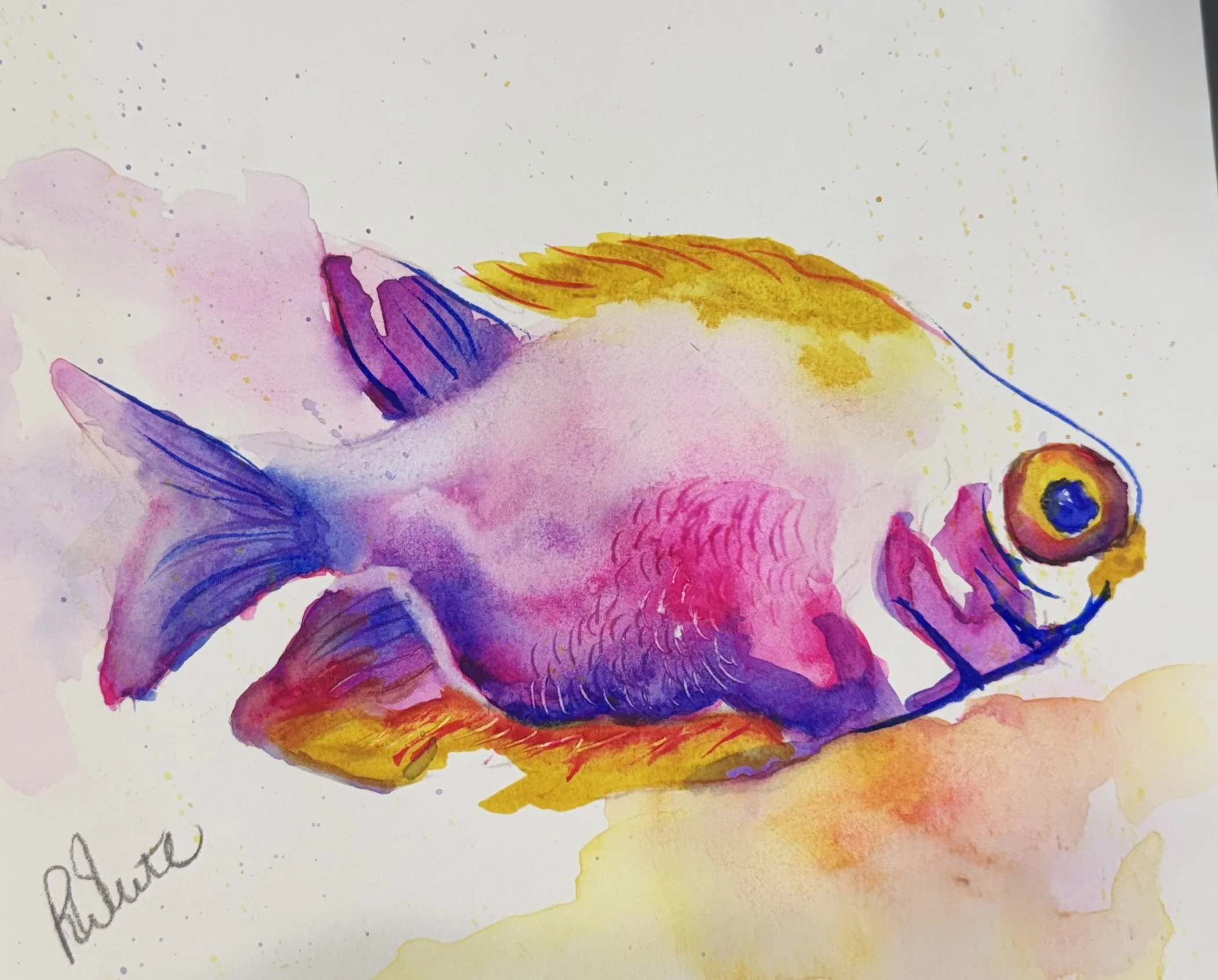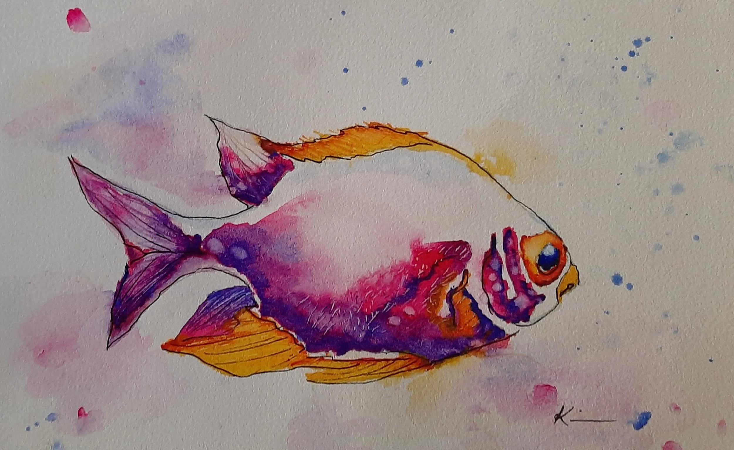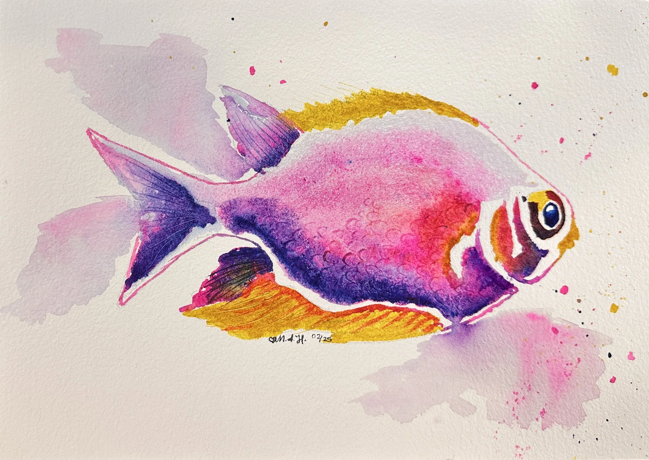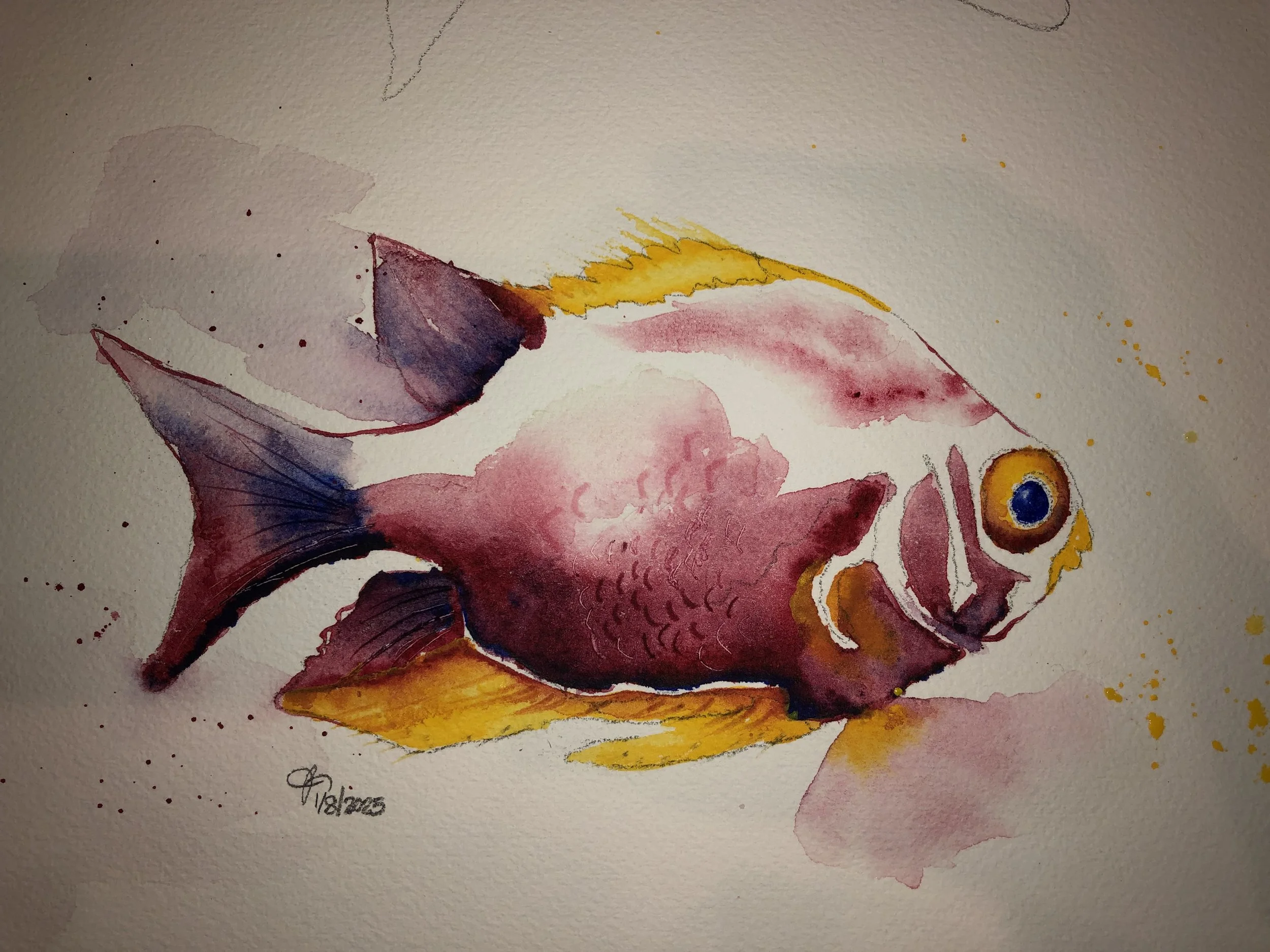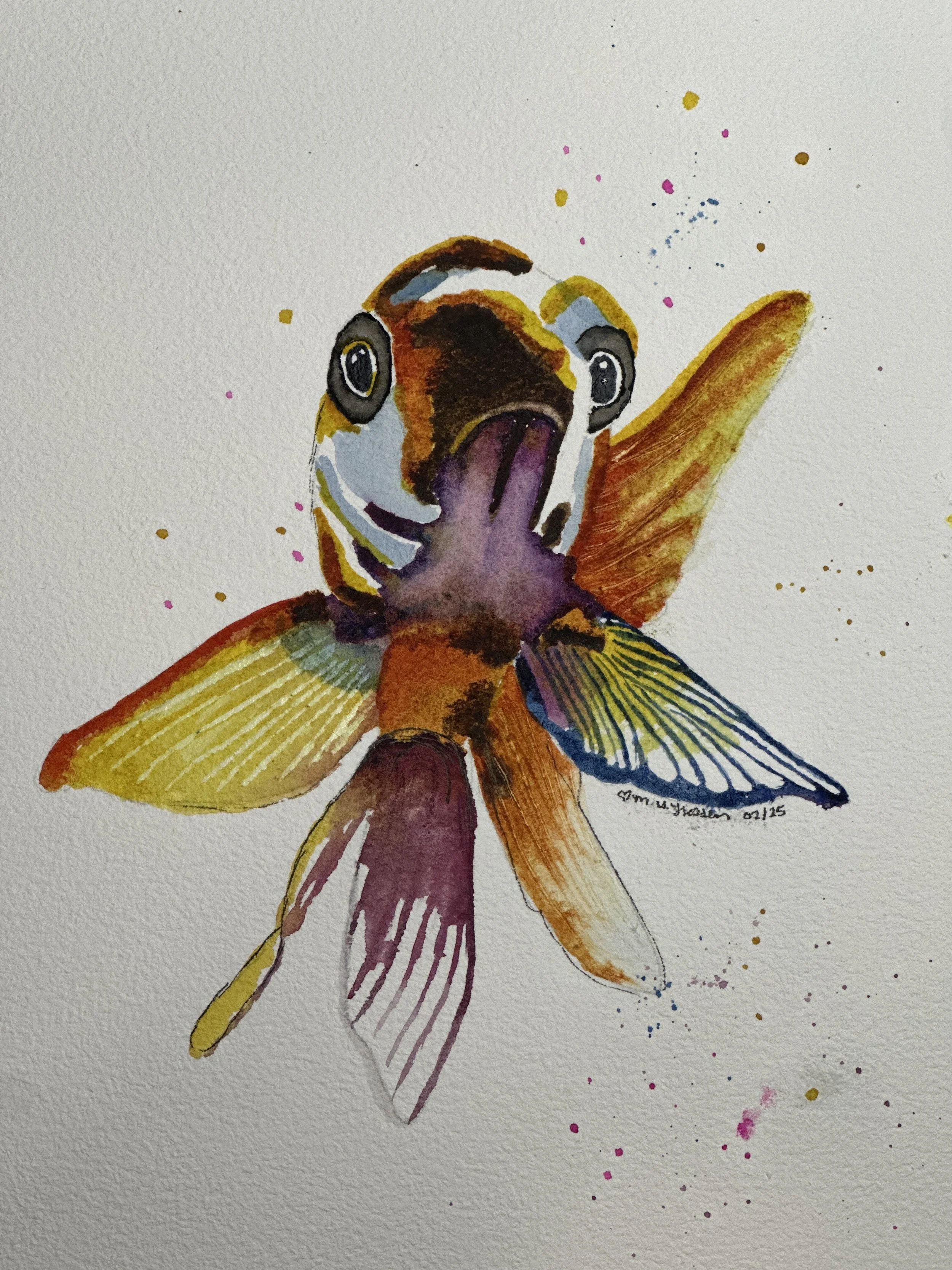 Fish from the Paint 333 Watercolor Program for Beginners lesson 1
